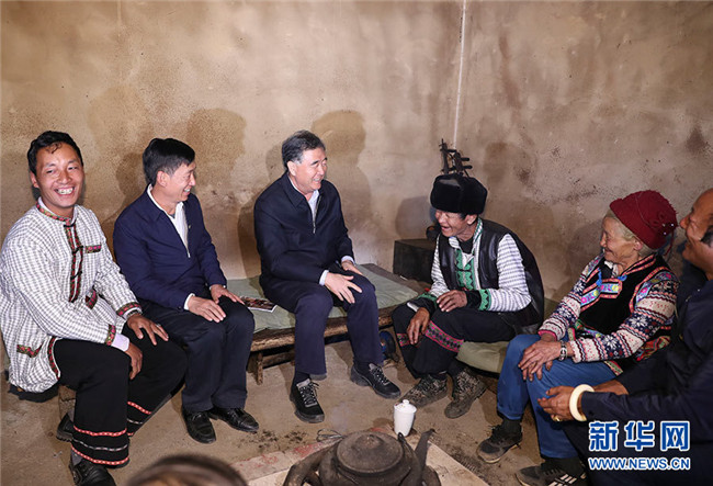 近日,中共中央政治局常委、全國(guó)政協(xié)主席汪洋在云南調(diào)研藏區(qū)民族宗教和脫貧攻堅(jiān)工作。這是10月15日,汪洋在香格里拉市虎跳峽鎮(zhèn)金星村調(diào)研。 新華社記者 丁林 攝