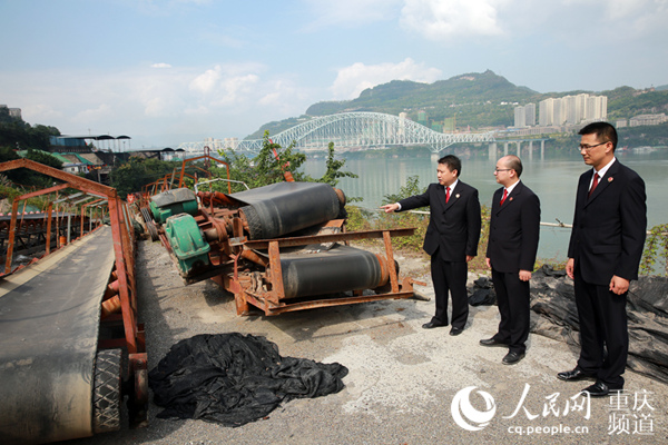 10月17日,重慶市人民檢察院第二分院檢察官復(fù)勘非法碼頭整治現(xiàn)場(chǎng)。劉政寧 攝