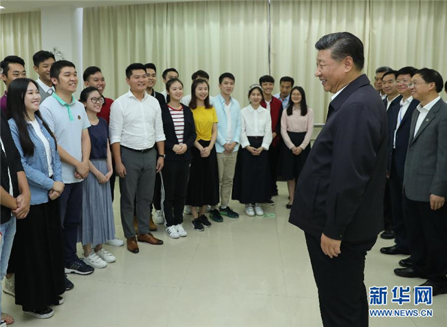 10月22日至25日,中共中央總書記、國家主席、中央軍委主席習(xí)近平在廣東考察。這是10月24日下午,習(xí)近平在廣州考察暨南大學(xué)時同部分港澳臺同胞和海外僑胞學(xué)生交流。 新華社記者鞠鵬攝
