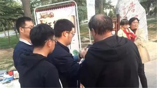 營銷中心工作人員耐心細(xì)致地幫助游客參與活動(dòng)