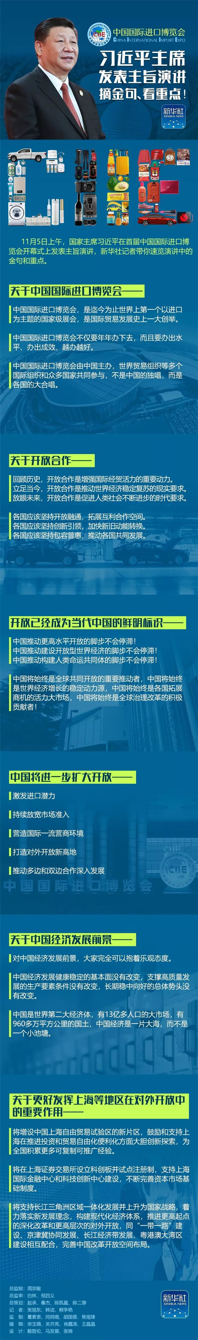 舉辦中國國際進(jìn)口博覽會,是中國著眼于推動新一輪高水平對外開放作出的重大決策,是中國主動向世界開放市場的重大舉措;這體現(xiàn)了中國支持多邊貿(mào)易體制、推動發(fā)展自由貿(mào)易的一貫立場,是中國推動建設(shè)開放型世界經(jīng)濟、支持經(jīng)濟全球化的實際行動。