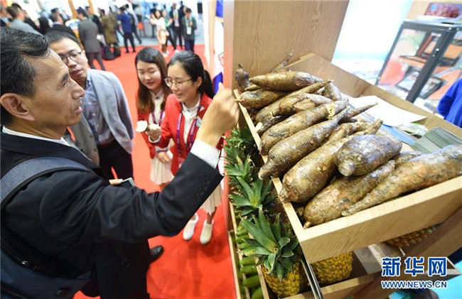 11月6日,參會者在首屆中國國際進口博覽會多米尼加展區(qū)觀看展出的農(nóng)產(chǎn)品。新華社記者韓瑜慶攝
