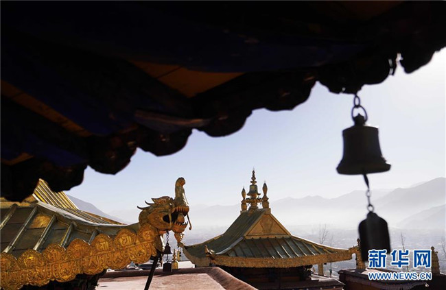 修繕后的布達(dá)拉宮金頂局部(11月7日攝)。 新華社記者普布扎西 攝