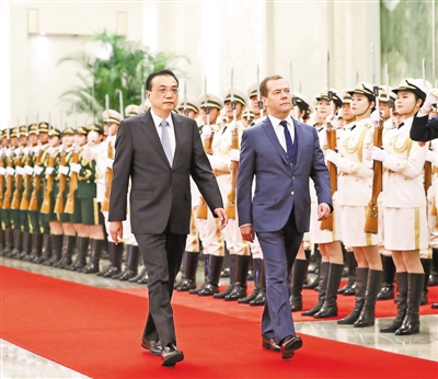 李克強指出,今年以來,中俄經貿合作持續(xù)快速發(fā)展,年內貿易額有望突破1000億美元,未來合作潛力巨大。希望雙方繼續(xù)提升貿易便利化水平,擴大相互投資規(guī)模,深化農業(yè)合作,推進中俄跨境電子商務健康穩(wěn)定發(fā)展,加強在創(chuàng)新領域、特別是在科技應用和基礎研究領域合作。以今明兩年舉辦中俄地方合作交流年為契機,調動兩國各地方開展更加廣泛的合作。繼續(xù)深化人文交流,加強媒體、青年、旅游、衛(wèi)生、體育各領域交流。