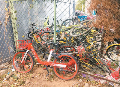 圖為廢棄的共享單車。本報記者 彭訓(xùn)文攝 |