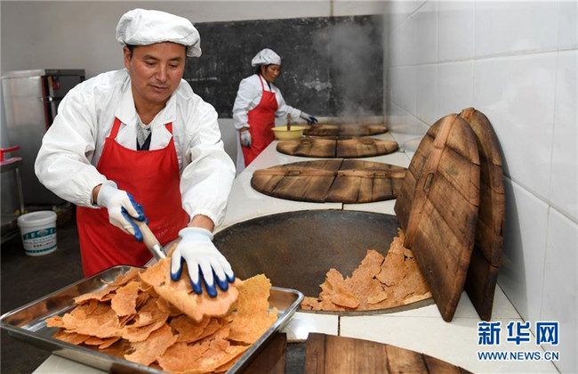 11月22日,汪明祥在鍋巴廠里加工鍋巴。 新華社記者 劉軍喜攝