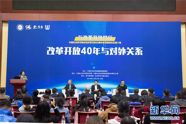 11月22日,中國(guó)社科院“與改革開放同行”系列智庫(kù)論壇第八場(chǎng)在北京開幕,本場(chǎng)主題為“改革開放40年與對(duì)外關(guān)系”。“與改革開放同行”系列智庫(kù)論壇是為慶祝中國(guó)改革開放40周年,由中國(guó)社會(huì)科學(xué)院國(guó)家高端智庫(kù)主辦,中國(guó)社會(huì)科學(xué)院科研局、中國(guó)社會(huì)科學(xué)院智庫(kù)建設(shè)協(xié)調(diào)辦公室承辦,新華網(wǎng)思客、社會(huì)科學(xué)文獻(xiàn)出版社協(xié)辦推出的。 新華網(wǎng)記者 李林 攝