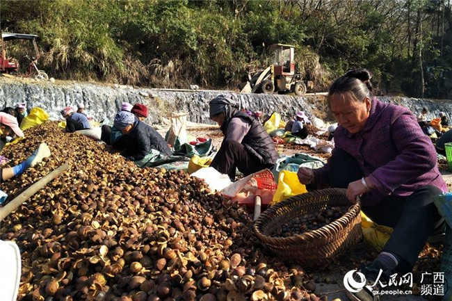 村民正在忙著挑揀油茶籽