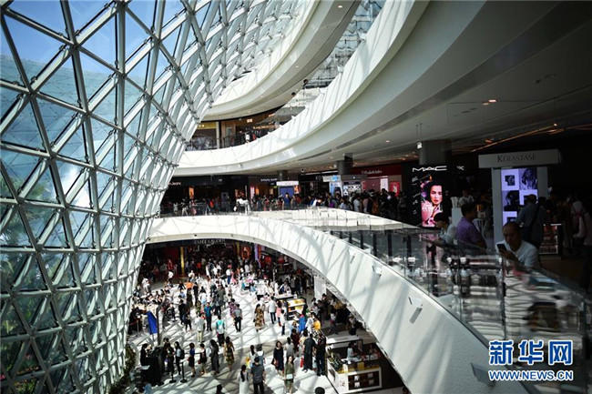 顧客在海南三亞海棠灣免稅店內(nèi)游覽、購物(2月18日攝)。新華社記者 郭程 攝