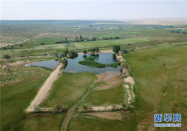 內(nèi)蒙古杭錦旗沙日召嘎查牧民白音道爾計治理過的庫布其沙漠(7月31日無人機拍攝)。新華社記者邢廣利攝