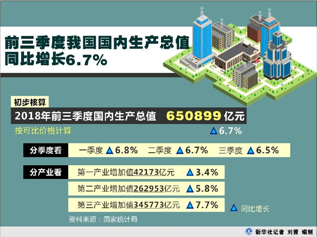 圖表:(資料圖表)前三季度我國國內(nèi)生產(chǎn)總值同比增長6.7% 新華社記者 劉茜 編制