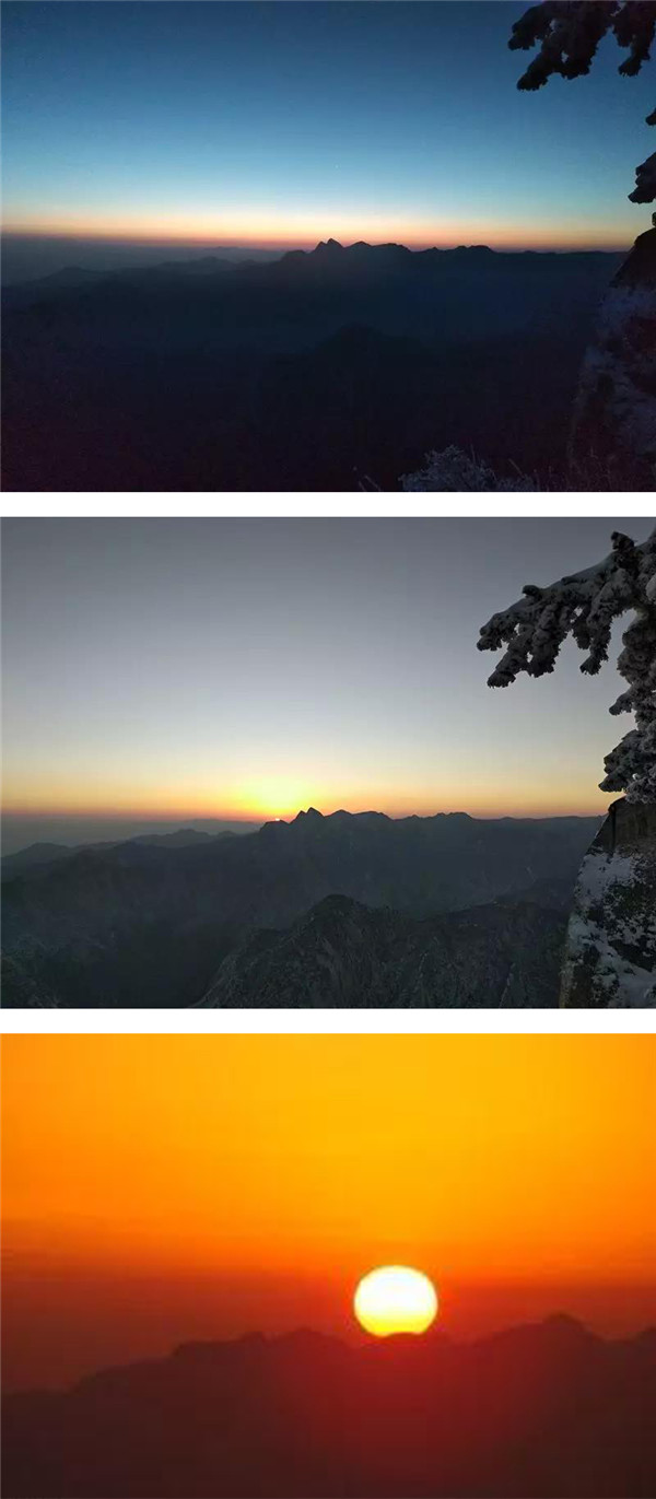 過(guò)后,又看到了下棋亭,長(zhǎng)空棧道,華山松,西峰,南峰。想到金庸先生,想到“華山論劍”,“飛雪連天射白鹿,笑書(shū)神俠倚碧鴛”,伴隨了中國(guó)幾代人的武俠情懷。這里,金色的陽(yáng)光,湛藍(lán)的天空,皚皚白雪;站在南峰仰天池上,左手秦嶺群山,右手八百里秦川,這就是華山之巔!