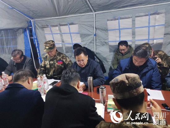 四川省應(yīng)急管理廳廳長(zhǎng)段毅君在宜賓市興文縣“12.16”5.7級(jí)地震抗震救災(zāi)指揮部指導(dǎo)抗震救災(zāi)工作。(圖片由省應(yīng)急管理廳提供)