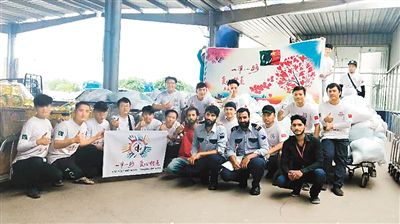 2018年5月,“一帶一路愛心傳遞”2018公益活動暨孤兒院捐贈活動在伊斯蘭堡啟動。當(dāng)?shù)貧鉁爻8哌_(dá)40攝氏度,每一份捐贈物資又都包含有大米、面、油、豆子和白糖。中國公益志愿者都自己動手進(jìn)行搬運(yùn)分發(fā)。