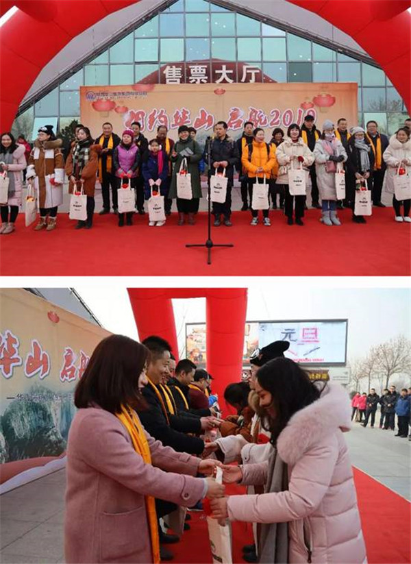 元旦當(dāng)天上午,伴隨著景區(qū)工作人員的熱情文藝表演,“相約華山 啟航2019”迎新年啟動(dòng)儀式正式拉開(kāi)帷幕,華山風(fēng)景名勝區(qū)管理委員會(huì)黨工委委員張永江代表華山全體員工向廣大游客朋友們致新年賀詞,恭祝全國(guó)游客新年快樂(lè)。他表示,2018年是華山的拼搏年,華山旅游人數(shù)首次突破300萬(wàn)人次大關(guān),隨著大華山旅游目的地的不斷建設(shè)與完善,休閑度假、康體養(yǎng)生、戶(hù)外拓展、自駕露營(yíng)、溫泉療養(yǎng)等各項(xiàng)旅游項(xiàng)目都受到中外游客的青睞。2019年,華山景區(qū)將揚(yáng)帆起航,再創(chuàng)輝煌。
