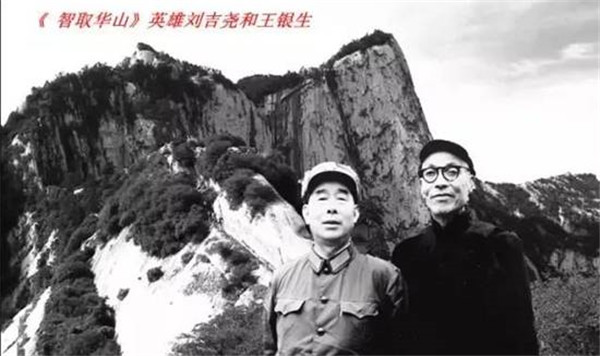 1949年6月,西北野戰(zhàn)軍解放了西安,當(dāng)華陰縣城解放時(shí),偽保六旅旅長韓子佩,帶一個(gè)警衛(wèi)營和旅直屬隊(duì)300余人逃到了華山上,企圖依靠華山天險(xiǎn)繼續(xù)同胡宗南聯(lián)系等待時(shí)機(jī),卷土重來。6月14日,中國人民解放軍大荔軍分區(qū)路東縱隊(duì)偵察參謀劉吉堯和六名偵察兵前往華山偵察道路。在當(dāng)?shù)叵驅(qū)蹉y生的帶領(lǐng)下,劉吉堯星夜帶領(lǐng)楊建東、路德才、孟俊甫、楊黨成、崔朝山、張自發(fā)等8勇士,到達(dá)猩猩溝盡頭。數(shù)百丈危崖聳立在面前,王銀生指著一個(gè)十丈高的黑洞說:“這是天井,我們就要從這里上去。”說著就把背著的大繩套在腰間,借著兩腿叉開的撐力,徐徐向上。10分鐘后,洞里放下來一根繩頭,7位偵察員依次被吊上天井。經(jīng)過一段險(xiǎn)坡后,前面又是一個(gè)高約15米的陡立石壑。王銀生施展他在山里采藥、打柴的本領(lǐng),借著一條石縫登上去,把繩子拴在一個(gè)木樁上,將其他同志吊上來。又向北行約1里便是“老虎口”,這是懸在絕壁上的一個(gè)崖歙,崖歙的上面伸出一個(gè)飛巖,下面是傾斜的滑坡,坡下便是一眼望不到底的萬丈深淵。這時(shí)候只要雙腿發(fā)軟,就會(huì)滑下去,尸骨無存。戰(zhàn)士們只能借著腰肢和肩膀的上下?lián)瘟?,好像一個(gè)木楔子似的慢慢通過。在漆黑的夜里,他們又下滑輾轉(zhuǎn)500多米,才到達(dá)北峰腳下。