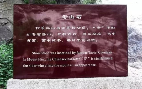 “壽山”二字在華山峪進(jìn)山一公里處山崖上,為道祖陳摶所題書。