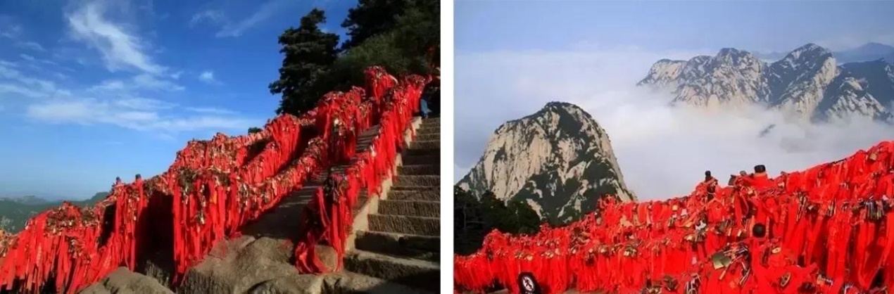 在金鎖關(guān)鎖上一把愛情鎖,讓一把感情鎖和華山一同到地老天荒,成為一個“山無陵,天地絕,乃敢與君絕”的千古情愛神話。