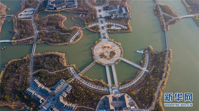 這是2018年3月13日拍攝的位于徐州賈汪區(qū)的潘安湖濕地公園一角(無(wú)人機(jī)拍攝)。新華社記者 季春鵬 攝
