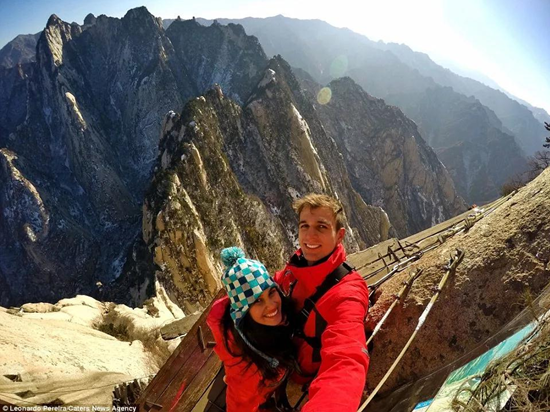 這是一個溫暖的美麗秋天,華山壯觀的峭壁在陽光下閃閃發(fā)亮,稀有樹木炫耀著多彩的秋葉,遠(yuǎn)方跳躍的瀑布吸引著游客的眼球,奇形怪狀的點點白云在腳下緩緩流動。我和我的朋友開始了一場艱苦的旅行,一起攀登6,600多級鑿在巖石上的臺階,目標(biāo)是海拔2154.9米南峰之巔祭祀華山神的道觀?! ?