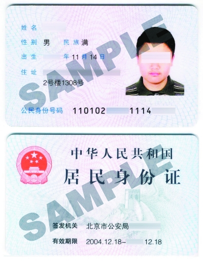 中國居民身份證樣本