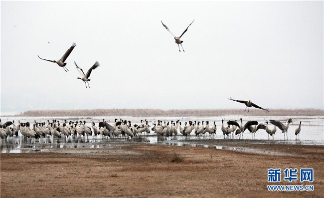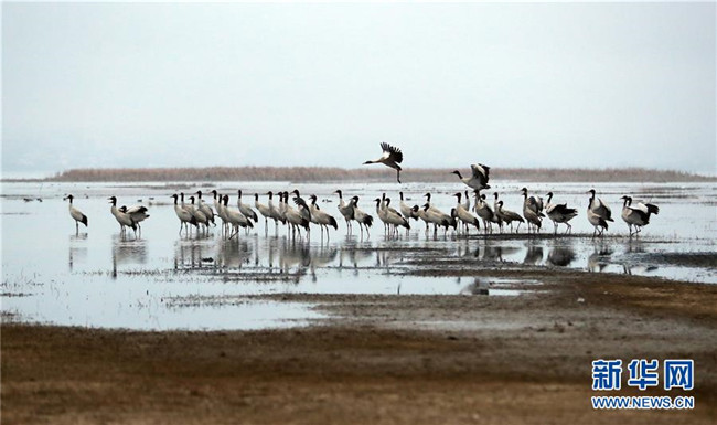 草海保護區(qū)是黑頸鶴越冬的主要棲息地之一,其在草海越冬期約為每年10月下旬到次年3月底。黑頸鶴是全球唯一在高原生長、繁殖的鶴類。新華社記者楊楹攝