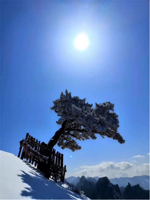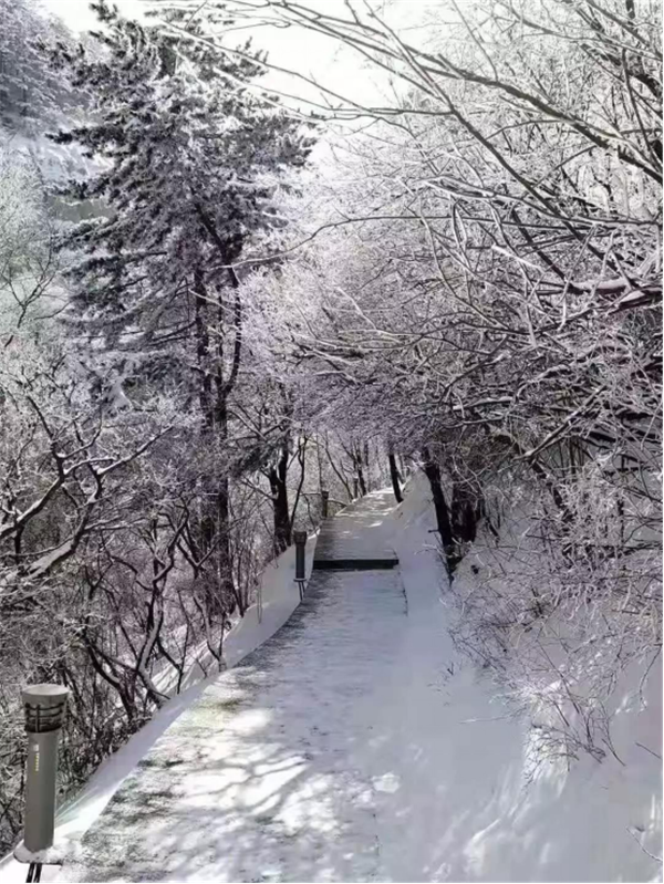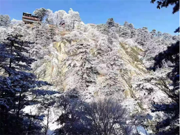 走進雪后的華山,你會覺得自己仿佛掉進了一個銀裝素裹的童話世界里,整個世界仿佛都被披上了一層白色婚紗。