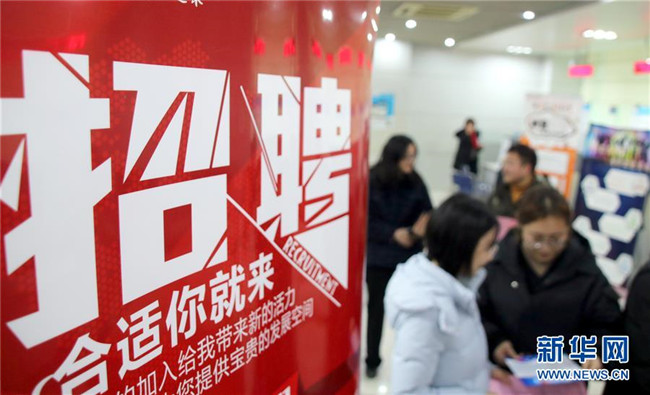 在江蘇省蘇州市“春風行動”綜合招聘會上,求職者在了解招聘信息(2月15日攝)。新華社發(fā)(王建康 攝)