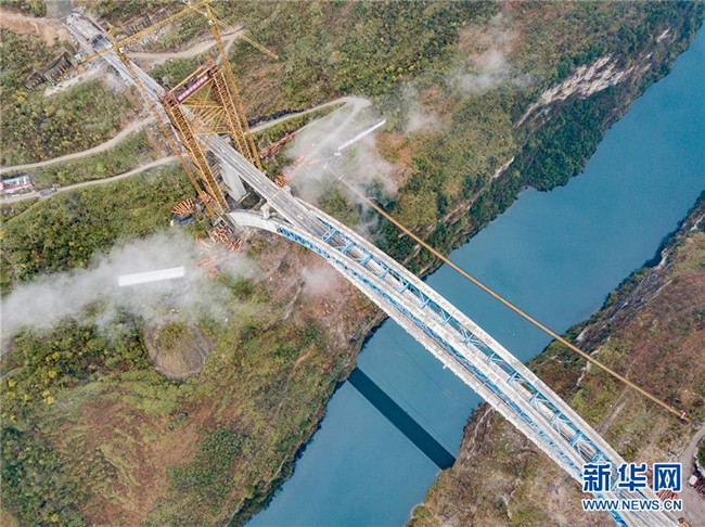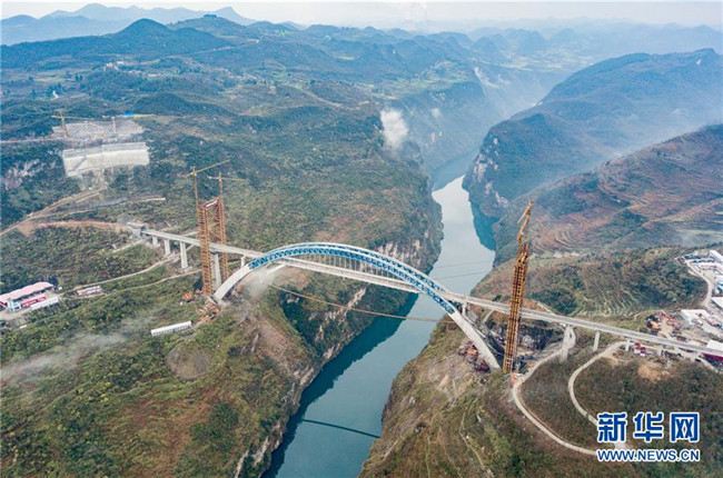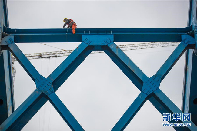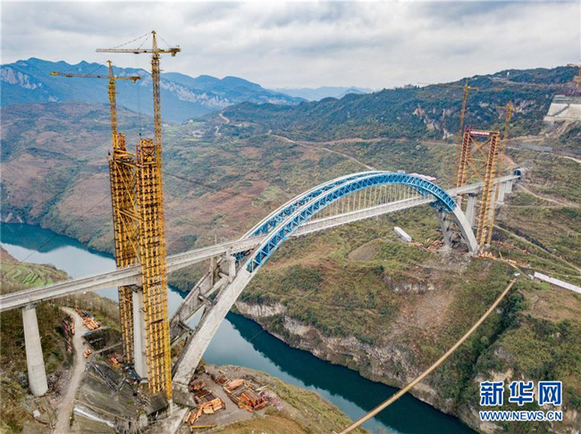 目前,成貴高鐵控制性工程鴨池河特大橋建設(shè)已進入最后沖刺階段,大橋主體工程完工,鋼軌鋪設(shè)已經(jīng)完成。預計該橋?qū)⒂谀陜?nèi)竣工。 新華社記者 劉續(xù) 攝