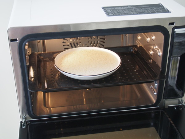 3.將大米放入美的S4蒸烤箱的蒸盤(pán)中,水箱加入足量的純凈水