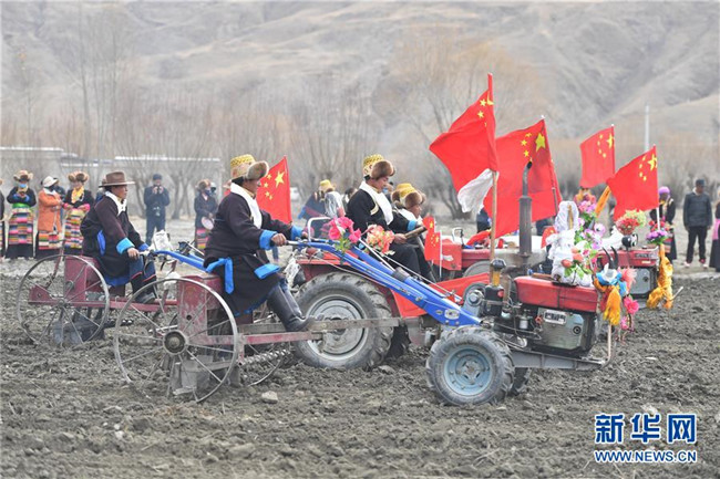克松社區(qū)村民在參加春耕儀式(3月16日攝)。 新華社記者 普布扎西 攝