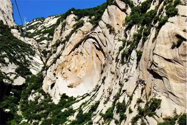 奇特之處:在東峰石樓峰東側(cè)的崖壁上,因大自然的風(fēng)雨侵蝕,形成了一面酷似手掌的石紋。石上五指分明,形象逼真,高有數(shù)十米,奇瑰壯觀,被譽(yù)為陜西“關(guān)中八景”第一景。