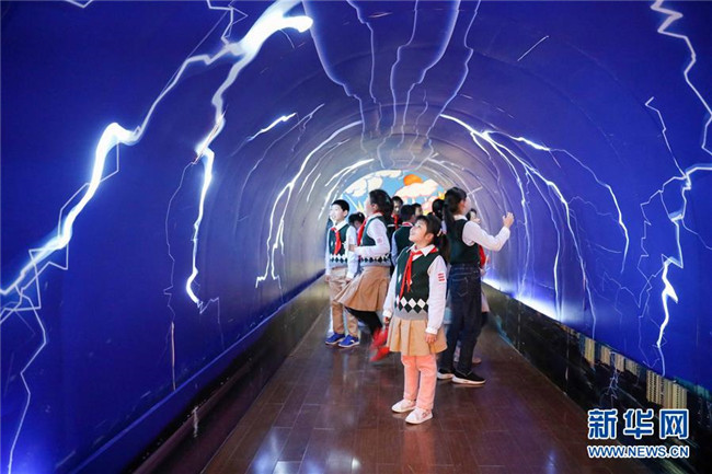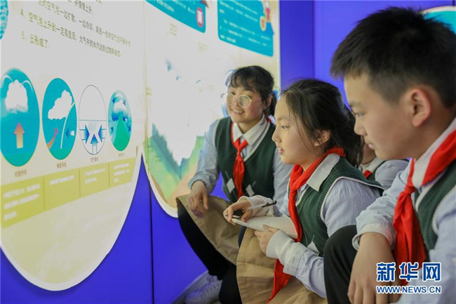 當日,安徽省合肥市合作化南路社區(qū)組織第六十七中學小學部學生來到市氣象科普館,學習氣象科普知識,迎接3月23日世界氣象日的到來。 新華社記者 曹力 攝