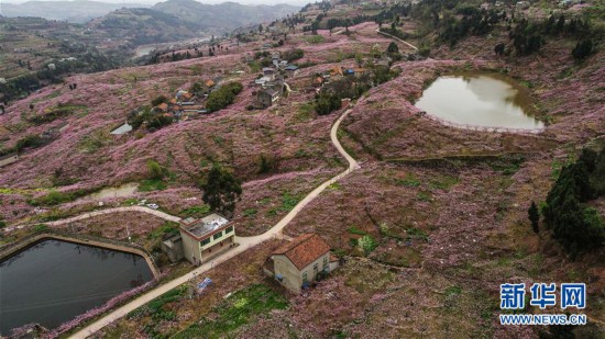3月21日,桃花在成都龍泉驛區(qū)龍泉山盛開(無人機拍攝)。每年三月,有“桃花故里”之稱的四川省成都市龍泉驛區(qū)一片粉紅,數(shù)萬畝桃花如醉霞緋云般競相綻放,令人流連忘返。 新華社記者 張玉薇 攝