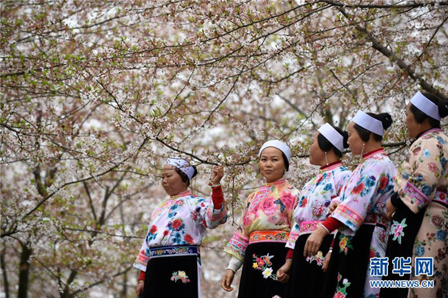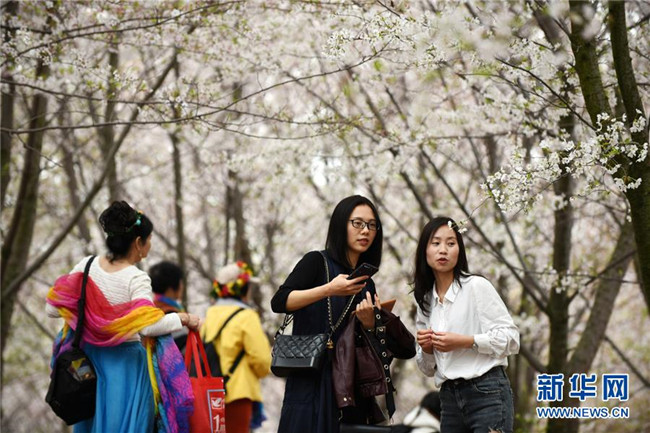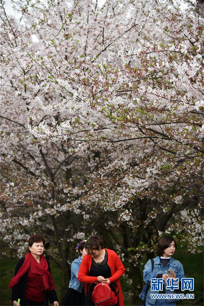 3月27日,游客在貴州省貴安新區(qū)櫻花觀光園賞花。新華社記者 楊文斌 攝