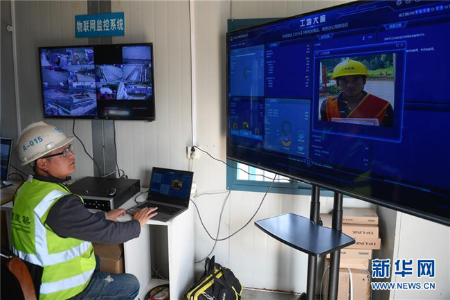 3月26日,工作人員在“浙江智慧之門”項目工地察看“工地大腦”的實時數據。據了解,“工地大腦”匯總了人員、設備、物料、進度、環(huán)境等要素。新華社記者黃宗治攝