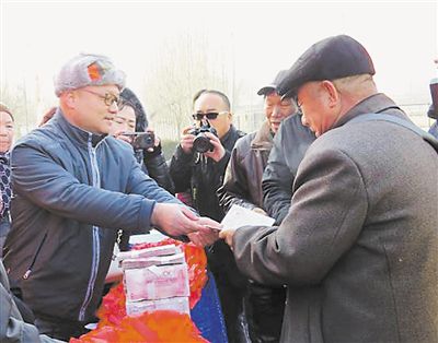今年1月30日,李園村開(kāi)啟歷史上首次村集體股份經(jīng)濟(jì)合作社頒證收益分紅,每位村民都享受到紅利。與之配套的,還有50歲以上村民享受100元春節(jié)慰問(wèn)的二次分紅。李園村黨支部書(shū)記馬玉林介紹,隨著村集體經(jīng)濟(jì)改革收益不斷壯大,村里在2017年為70歲以上老人發(fā)放春節(jié)慰問(wèn)品的基礎(chǔ)上,今年將慰問(wèn)對(duì)象延伸到了50歲以上老人。