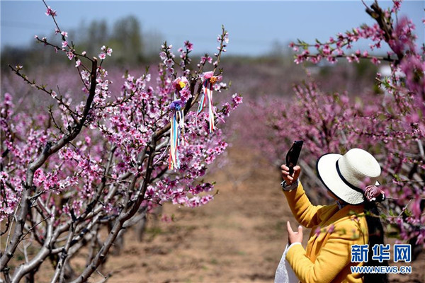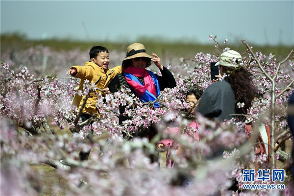仲春時節(jié),山東省臨沂市郯城縣馬頭鎮(zhèn)“農(nóng)家花園”里桃花正艷,吸引游客前來踏青賞花。近年來,郯城縣農(nóng)民通過流轉(zhuǎn)土地、復耕開發(fā)等形式創(chuàng)辦多個集賞花采摘、旅游觀光、休閑娛樂為一體的花園式農(nóng)場,帶動當?shù)剜l(xiāng)村旅游發(fā)展。
