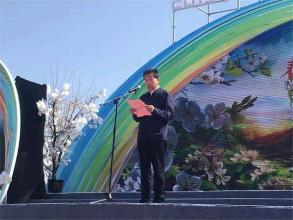 梨花節(jié)開幕式演出開始之前首先有三位嘉賓代表上臺發(fā)言致辭。