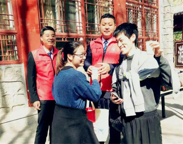 來自景區(qū)一線工作崗位的30名“紅馬甲”志愿者首次參與到度節(jié)執(zhí)勤工作中,志愿者們在關鍵區(qū)域向游客提供游覽咨詢、道路指引、免費熱水供應、免費醫(yī)療救護等服務。