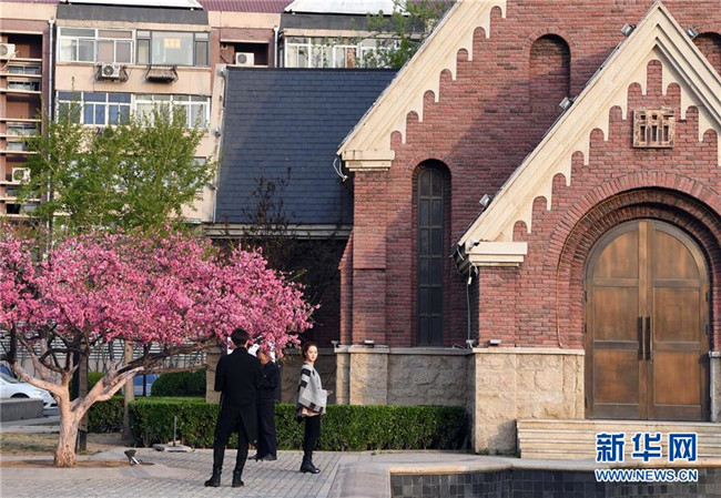 4月8日,游客在天津五大道景區(qū)游覽。四月的天津五大道,鮮花怒放,景色宜人。新華社記者馬平攝