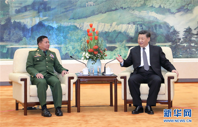 敏昂萊衷心感謝習(xí)近平主席撥冗會(huì)見。他說,緬中兩國有著悠久的傳統(tǒng)友誼,兩國兩軍關(guān)系始終保持良好發(fā)展。緬方感謝中方長(zhǎng)期以來對(duì)緬國家和軍隊(duì)發(fā)展建設(shè)給予的寶貴支持,感謝中方支持緬國內(nèi)和平進(jìn)程。緬方歡迎、支持并愿積極參與“一帶一路”建設(shè),加強(qiáng)與中方各領(lǐng)域務(wù)實(shí)合作,采取切實(shí)措施維護(hù)緬中邊境地區(qū)穩(wěn)定。
