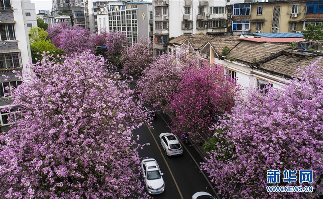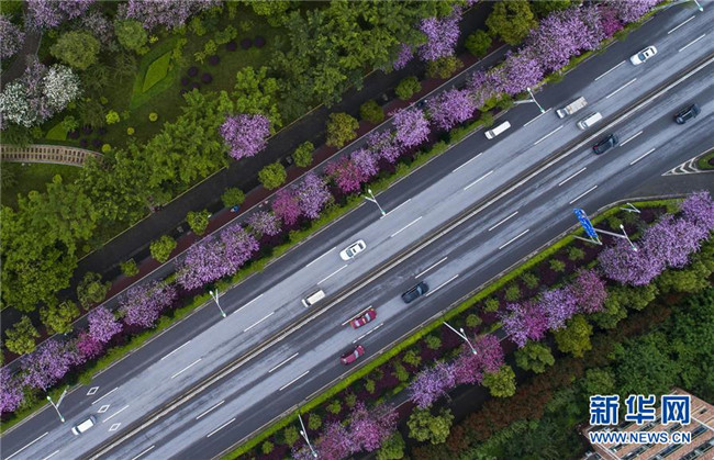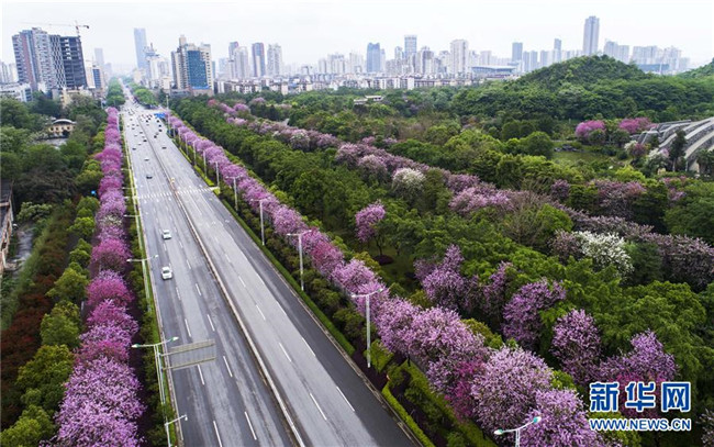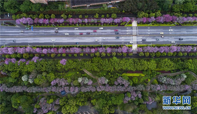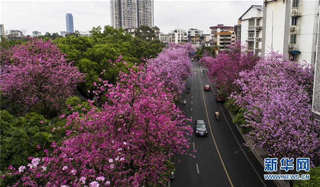 當(dāng)日,一場大雨過后,廣西柳州市內(nèi)的洋紫荊開得格外嬌艷。時(shí)下,柳州市區(qū)27萬株洋紫荊進(jìn)入盛花期。 新華社記者 黃孝邦 攝