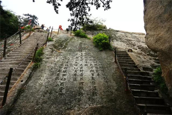 華山系一塊完整碩大的花崗巖體構(gòu)成,歷史衍化可追溯至27億年.“太華之山,削成而四方,其高五千仞,其廣十里。”華山之險(xiǎn)居五岳之首,登山之路蜿蜒曲折,長(zhǎng)達(dá)12公里,到處都是懸崖絕壁,有“自古華山一條道”的說(shuō)法。