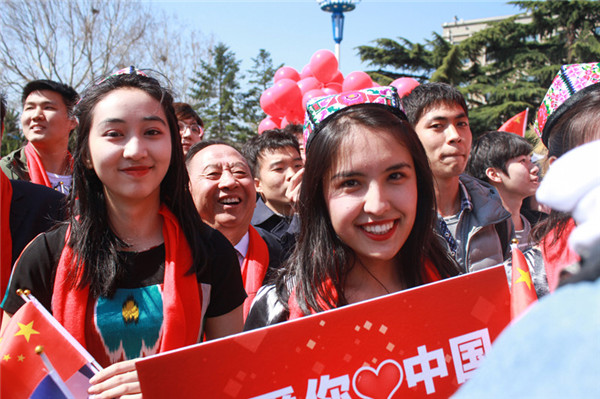 少數(shù)民族學生穿著民族服飾參加活動(平原/攝)