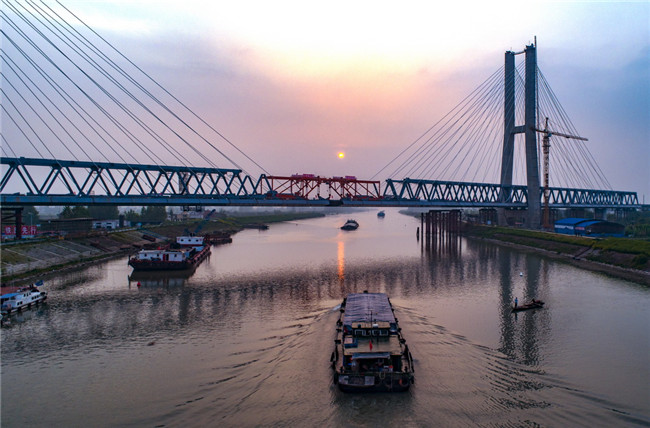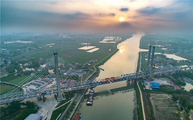 北起河南商丘,向南經(jīng)安徽阜陽、合肥、蕪湖,直抵浙江杭州的商合杭鐵路,全長794.55公里,設(shè)計時速350公里,線路北接鄭州至徐州高鐵,并與北京至福州高鐵和滬漢蓉高鐵相連,在杭州通過寧杭高鐵與京滬高鐵相通,是縱貫安徽省全境、連接中原、江淮與長三角地區(qū)的重要交通主干線。此次裕溪河特大橋順利合龍極大地推動了商合杭鐵路全線的建設(shè)步伐,建成通車后,合肥與省內(nèi)周邊城市將形成半小時至1小時的交通圈,合肥到杭州、商丘均可實現(xiàn)一天往返,沿線群眾可以充分享受到長三角地區(qū)經(jīng)濟(jì)發(fā)展的紅利,對促進(jìn)區(qū)域經(jīng)濟(jì)聯(lián)系,增強(qiáng)華東地區(qū)經(jīng)濟(jì)發(fā)展的后勁具有十分重大的意義。人民網(wǎng)記者史家民攝影報道