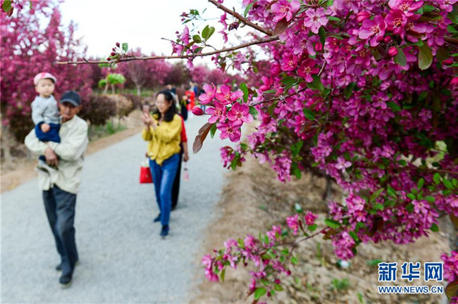 當(dāng)日,正在新疆昌吉回族自治州呼圖壁縣舉行的第四屆海棠花季鄉(xiāng)村文化旅游節(jié)吸引了眾多游客。目前,新疆天山北麓海棠花相繼綻放,進入最佳觀賞期。 新華社發(fā)(丁磊攝)