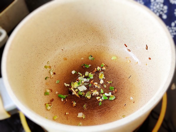 2.鍋中放少許食用油,放入蔥花炒出香味。