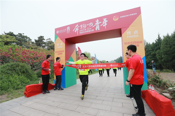 人民網北京4月30日電 近日,在五四青年節(jié)和北京大學建校121周年校慶日即將來臨之際,“奔跑吧,青年!”北京大學首屆五四青春長跑順利舉行。北大五千四百余名師生員工跨越5.4公里,以奔跑的姿態(tài)抒發(fā)愛國情,用奮斗的精神砥礪報國志,共同紀念五四運動100周年。