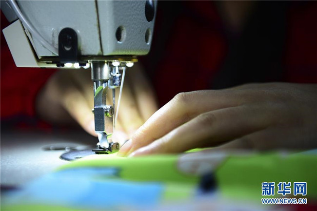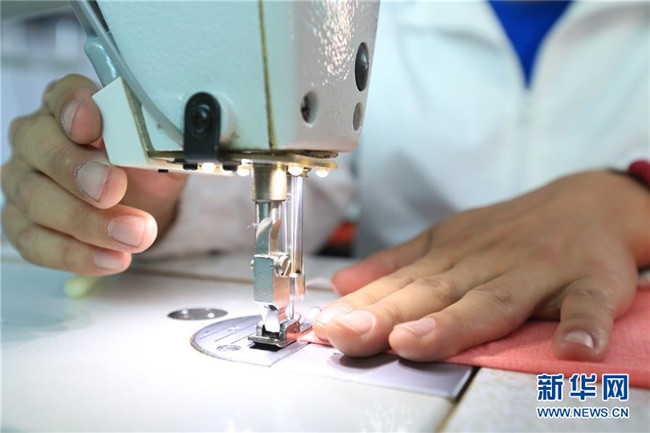 5月15日,在畢節(jié)市特殊教育學(xué)校,一名學(xué)生在進(jìn)行縫紉加工。 新華社發(fā)(王純亮 攝)